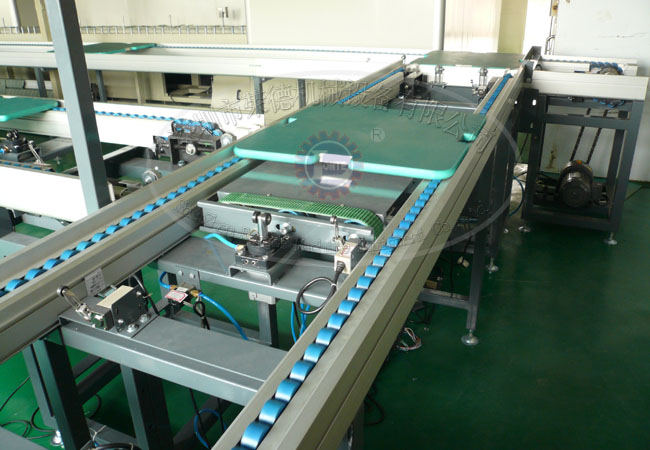 工裝板平面循環組裝線技術優勢:輸送線鏈條采用三倍速鏈條,鏈條滾輪采用工程塑膠,具有耐磨、噪音低等特點,輸送工裝板時順暢圓滑,運轉時安靜無聲,平穩傳動。依照客戶生產制程及廠房空間條件,可為客戶度身設計規劃,務求合理的設計可為客戶節省空間的同時達到最佳的生產流程。