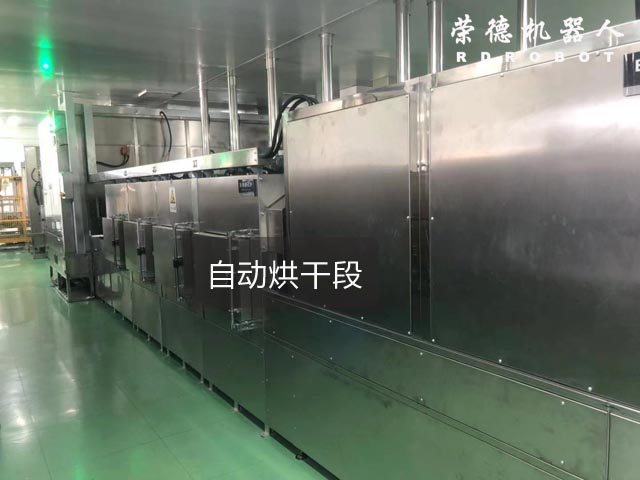 上件→預熱→自動噴A面→烘干→冷卻→自動翻面→預熱→自動噴B面→烘干→冷卻→下件