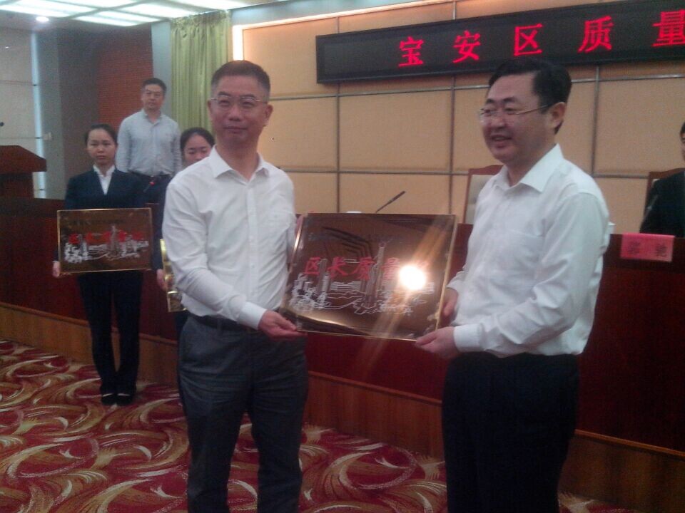 區(qū)長王宏彬同志為獲獎企業(yè)頒發(fā)了獎杯,獎杯上“以質(zhì)取勝碩果累,寶安品牌新標(biāo)桿”的大字激勵(lì)著我們質(zhì)量工作者并就全區(qū)質(zhì)量工作做了重要講話,主要有以下內(nèi)容: