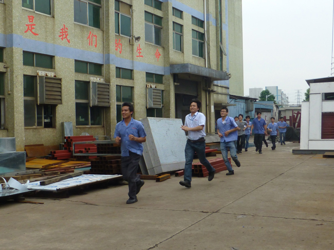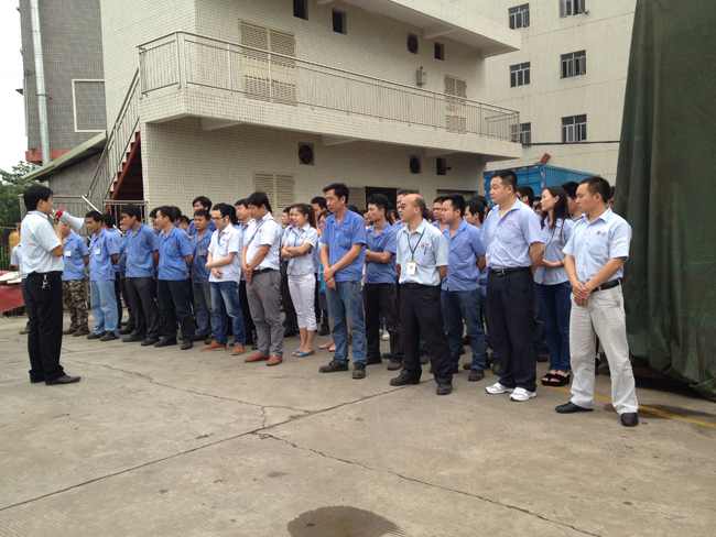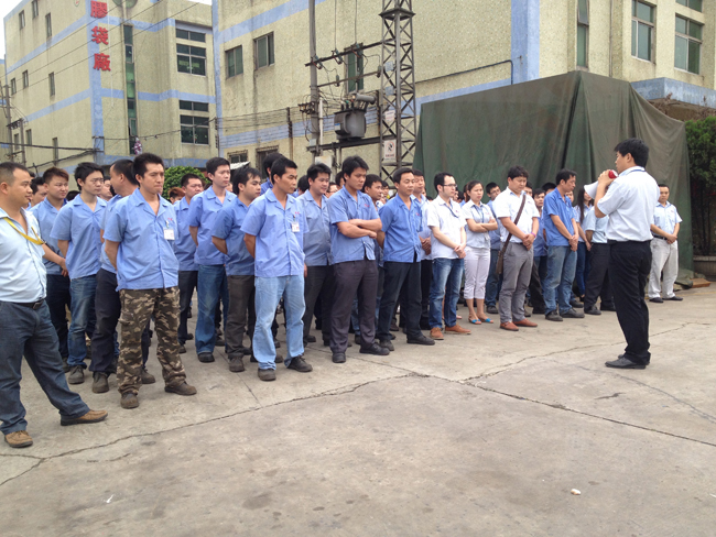 2014年4月26日17點整,消防警鈴響起,義務消防隊疏散組成員在第一時間分別趕到公司辦公樓各樓層以及宿舍內,在他們的喊話提醒下將所有員工于120秒內有序地疏散到廠外的安全區域,在整個過程中,秩序井然、無人員受傷和擁擠踩踏的情況。要知道此次逃生演習的過程員工是不知情的,僅疏散組成員提前開會討論過。逃生演習拉開了此次消防演習的序幕。