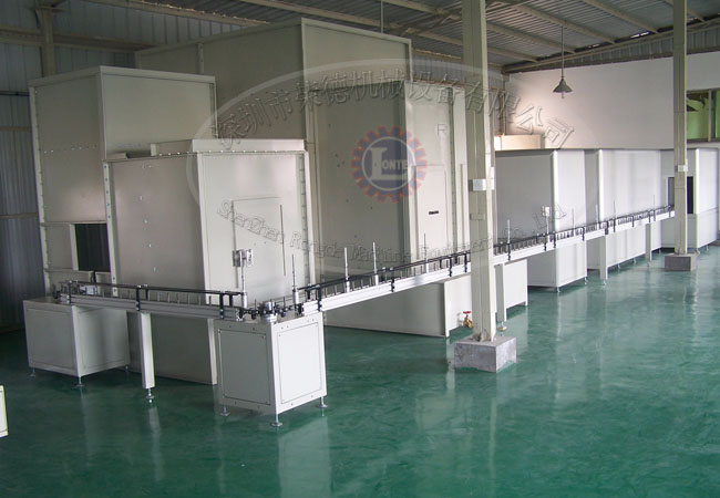 手機外殼噴涂線(spindle噴涂線): 靜電除塵、噴涂、烘干全自動流水線作業,用人少,適合批量連續生產,產量高、涂層面均勻;全封閉無人操作噴涂作業;生產合格率高,品質穩定;輸送鏈條與軌道接觸點配置軸承配合精準的軌道,運轉時輕快順暢、平穩不抖動。