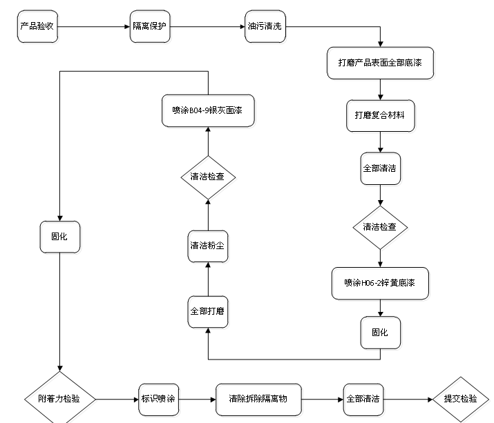 以H06-2鋅黃底漆、B04-9銀灰面漆為例,具體的噴漆過(guò)程流程圖如圖1所示。