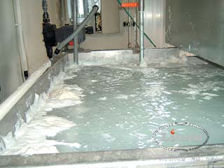 污水站主要構筑物與設備主要有廢水提升泵、廢水循環泵、行車式撈渣機、混凝氣浮池、組合式生化池、污水提升泵、污泥回流泵、鼓風機、曝氣頭、組合填料、斜管填料、PVC蜂窩斜管、反應攪拌機、污泥池攪拌機、石英砂過濾器、活性炭過濾器、過濾器進水泵、板框壓濾機、污泥螺桿泵、污泥排泥泵、加藥裝置、廢水調節池等。