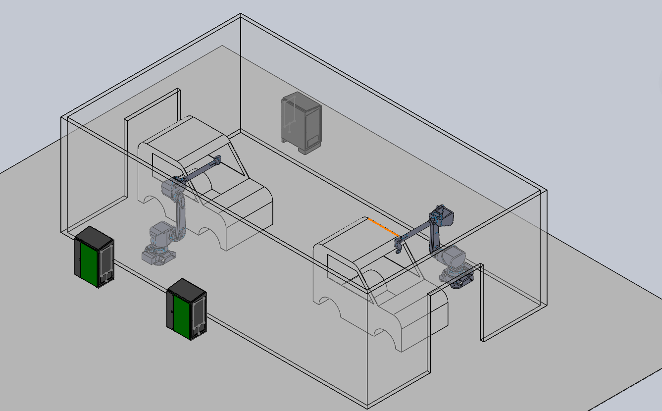 對機(jī)器人噴漆設(shè)備系統(tǒng)配備主電源控制,有效地對過電流、短路、過載、缺相等故障進(jìn)行保護(hù)。對烘爐的控制加熱和自動(dòng)恒溫控制,超溫、熱風(fēng)循環(huán)風(fēng)機(jī)故障時(shí),自動(dòng)關(guān)閉加熱裝置。發(fā)出聲光報(bào)警。對輸送的控制,采用變頻無級變速,具有運(yùn)行平穩(wěn)、安全可靠、無抖動(dòng)爬行現(xiàn)象。在噴漆室內(nèi)、外設(shè)有急停開關(guān),并設(shè)有開線、停線報(bào)警裝置。整套系統(tǒng)配有安全保護(hù)裝置,并發(fā)出聲光報(bào)警。對噴涂機(jī)器人的控制,人工選定產(chǎn)品型號后發(fā)送信號到機(jī)器人控制柜,期間與噴房、輸送等各個(gè)信號間進(jìn)行互鎖;PLC調(diào)用相關(guān)的噴涂軌跡完成噴涂作業(yè)。