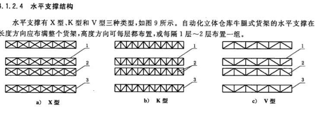 垂直支撐有X型剛性、X型柔性和Z型剛性三種類型,自動化立體倉庫牛腿式貨架的垂直支撐在長度方向應(yīng)布滿整個(gè)貨架