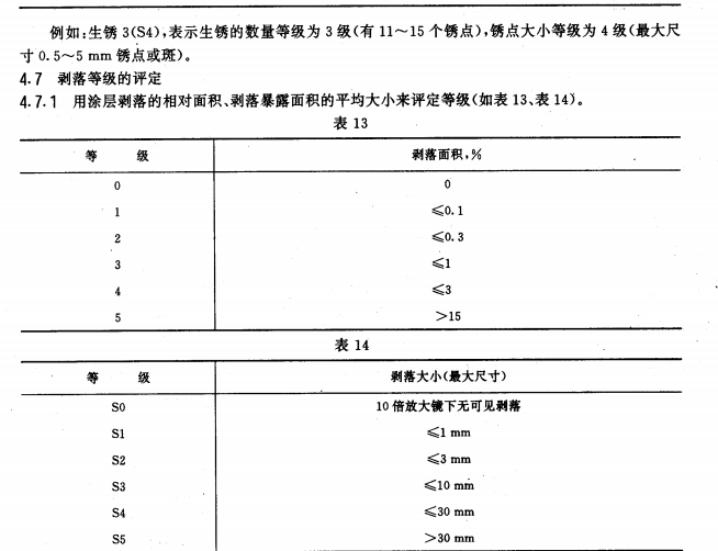 4.如漆膜有數(shù)種破壞現(xiàn)象,評定等級時(shí),應(yīng)按按破壞最嚴(yán)重的一項(xiàng)評定。