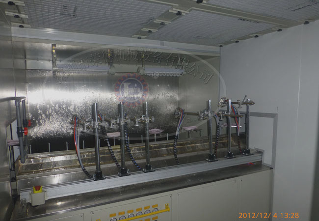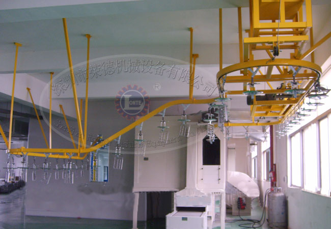 2.自動噴涂系統:由自動噴涂裝置(四軸噴涂往復機)、零件輸送旋轉車、供漆及噴涂系統(噴槍、隔膜泵浦)、電氣控制系統等結構組成。