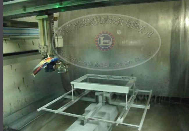 大型壓鑄件自動往復噴漆機械手設備有干式噴漆房、自動噴涂系統、調漆室等組成。